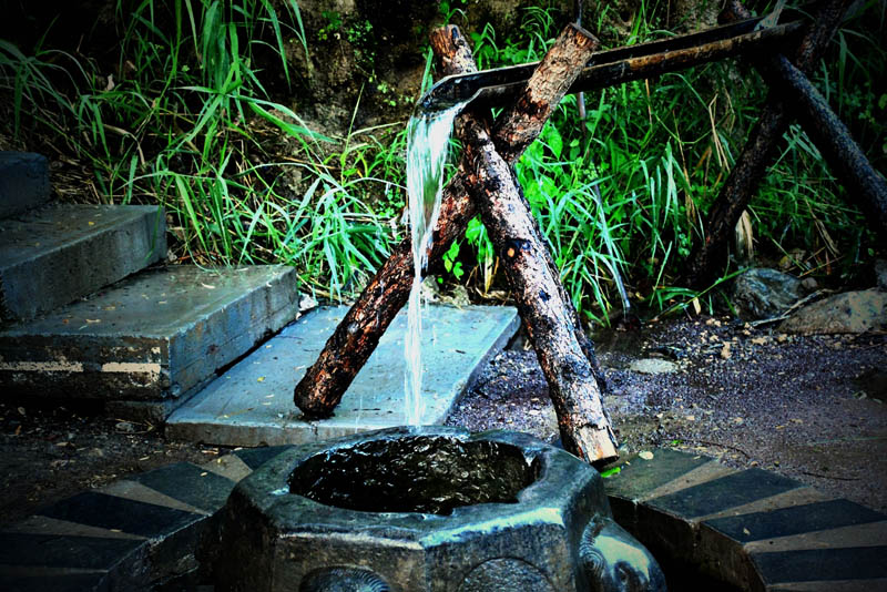 滴水壶终年流淌的高山溪流,从几十米高的黄悬崖峭壁垂泻而下,漫观音洞,如珠帘倒卷,似高崖垂链,泼散成雨,为人们再现花果山“水帘洞”的奇妙景观,由此而名为“滴水壶”。