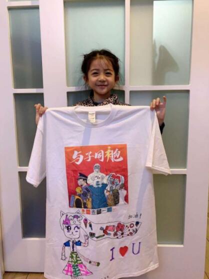 “医护人员拿到文化衫后,都非常高兴,她们说小朋友画得太好看了。”徐敬阳说。
