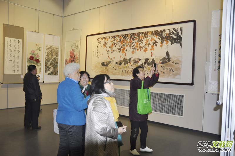 现场看到,当代画坛有“黄冑的驴,晋庸的鱼”之说的著名画家冯晋庸的作品《鱼》﹔中科院文联主席郭曰方书法作品《美丽中华》﹔山水画家、中国名家书画院副院长史贵仁的巨幅画作《桃花深处》﹔当代画马名家梨山的画作《八骏雄风》﹔山水名家刘万青的巨幅画作《平谷山水》﹔中科院博士生导师辛希孟的巨幅书法行楷《桃花源记》﹔国务院港澳事务办公室退休干部、著名书法家张保才先生的隶书。中国书协、美协大家也有作品参展,引得参观者驻足连连。现场最为震撼的是,中科院美协主席、平谷本地画家周春民特意为此次书画展创作的巨幅画作《紫气东来》、《盛世吉祥》,作品大气磅礡,吸引诸多书画爱好者在前拍照品鉴。本网总编笑琰(靳新国)的作品入展两幅。